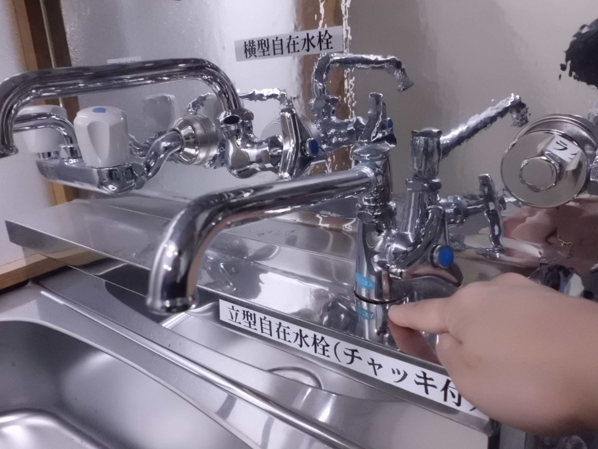水栓の形状と指差しにより、根本に不具合が起きていることがわかります。